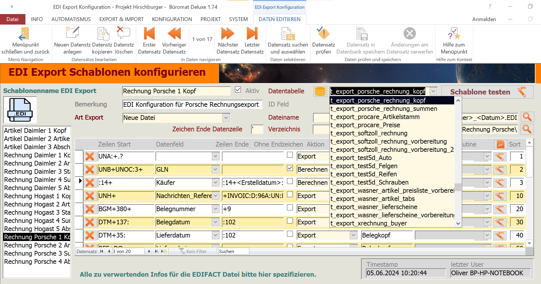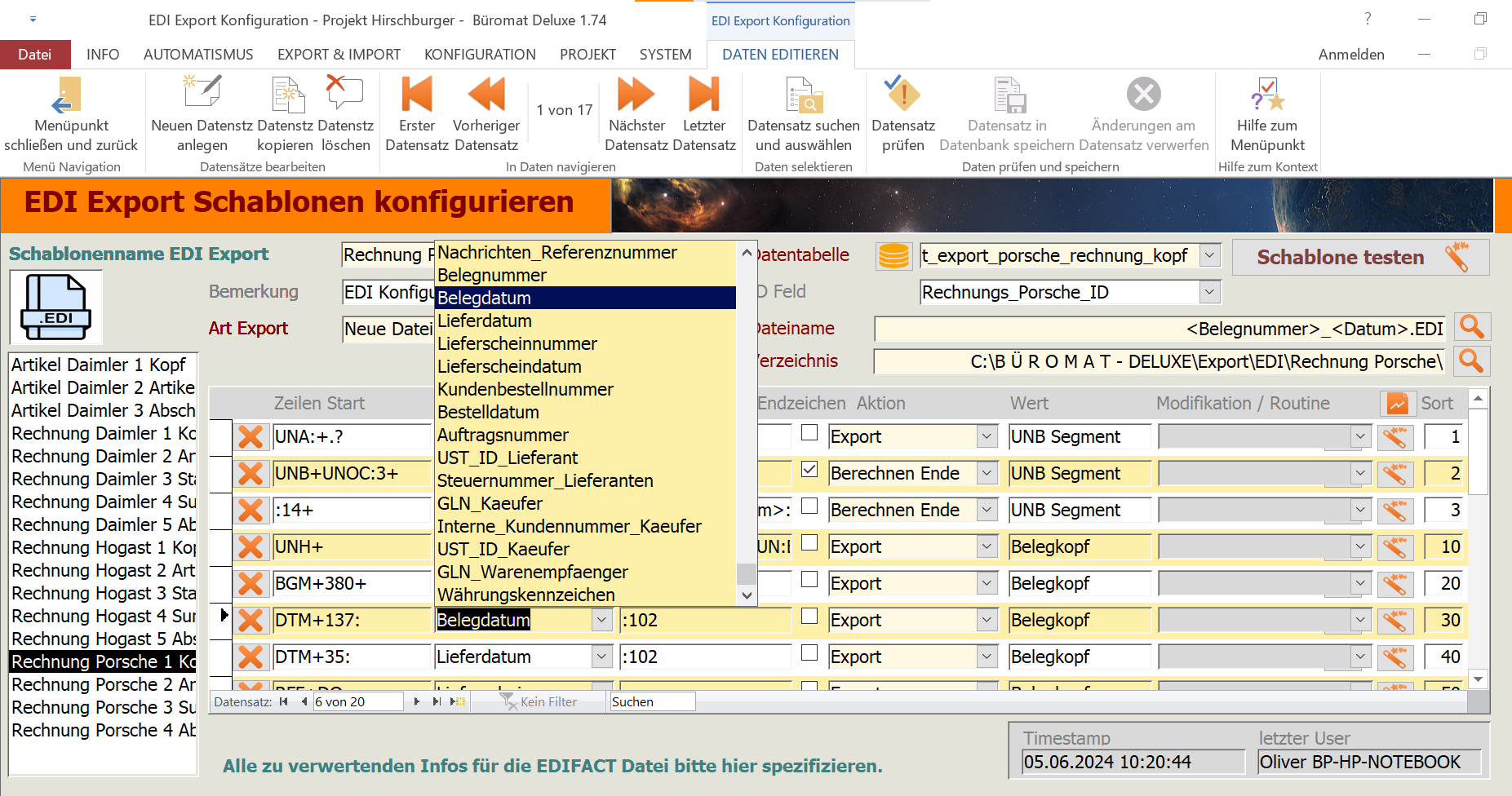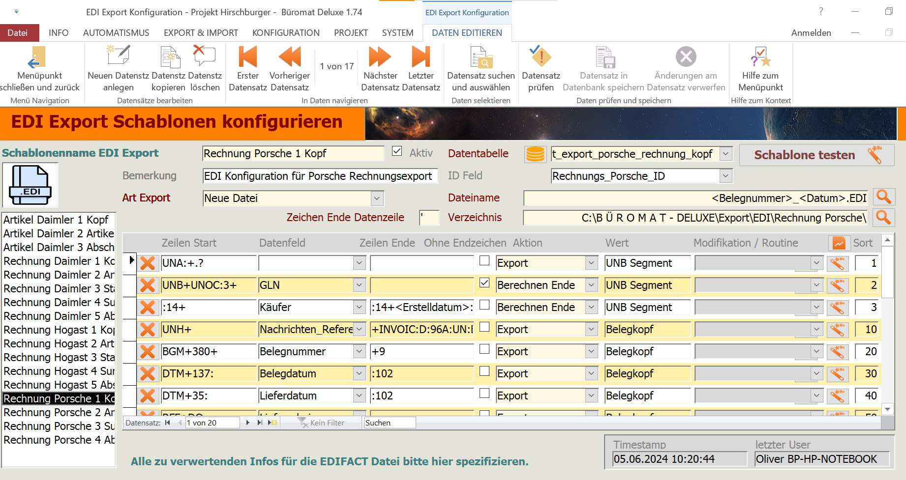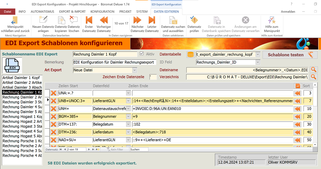 Bearbeiten der Schablonen für den Export von EDI Dateien mit flexiblen Daten