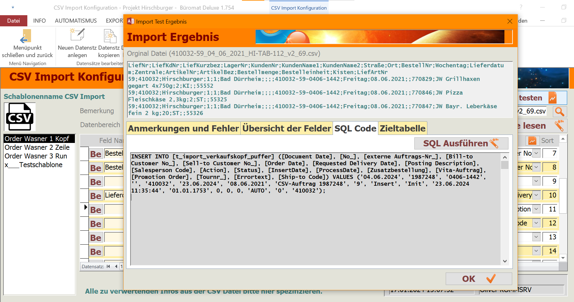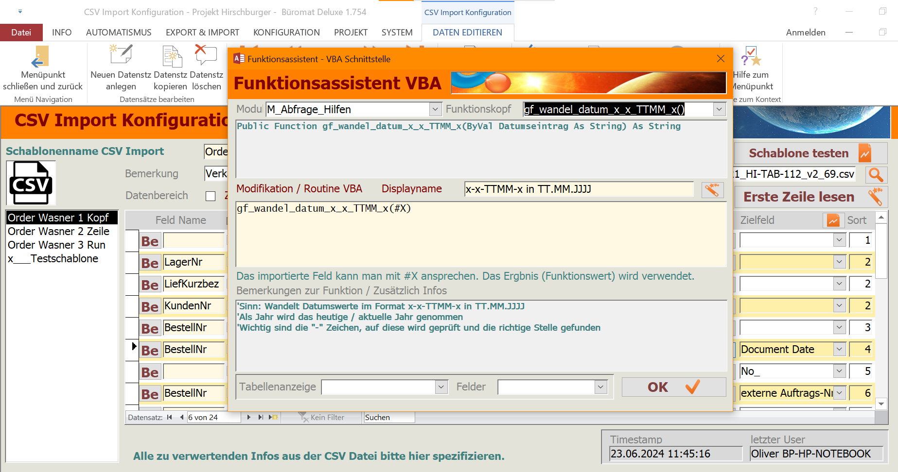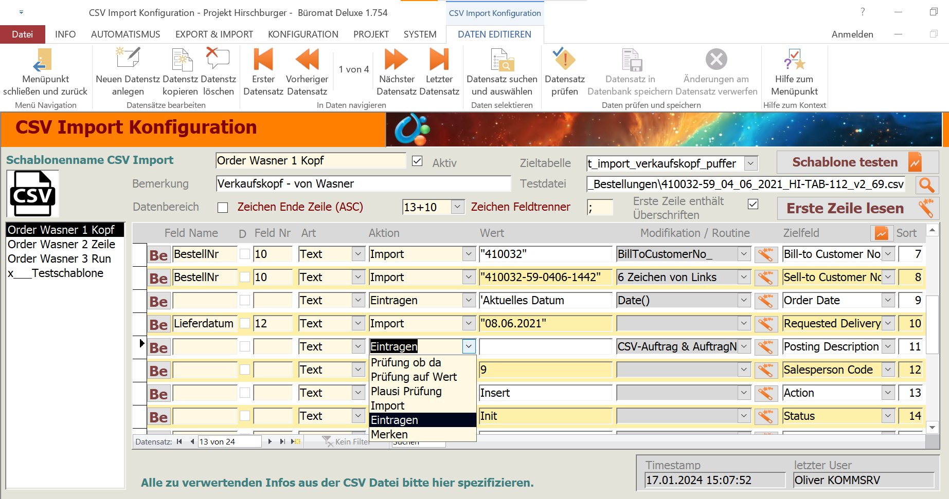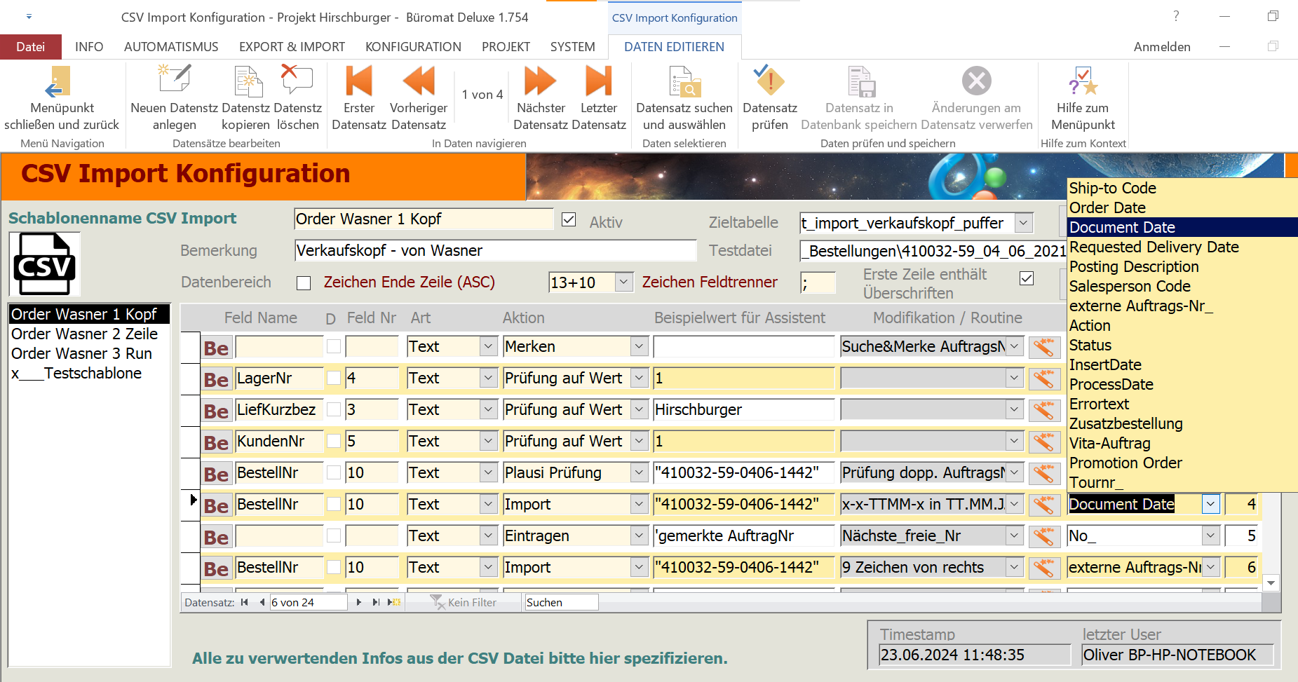 Bearbeiten der Schablonen für den Import von CSV Dateien