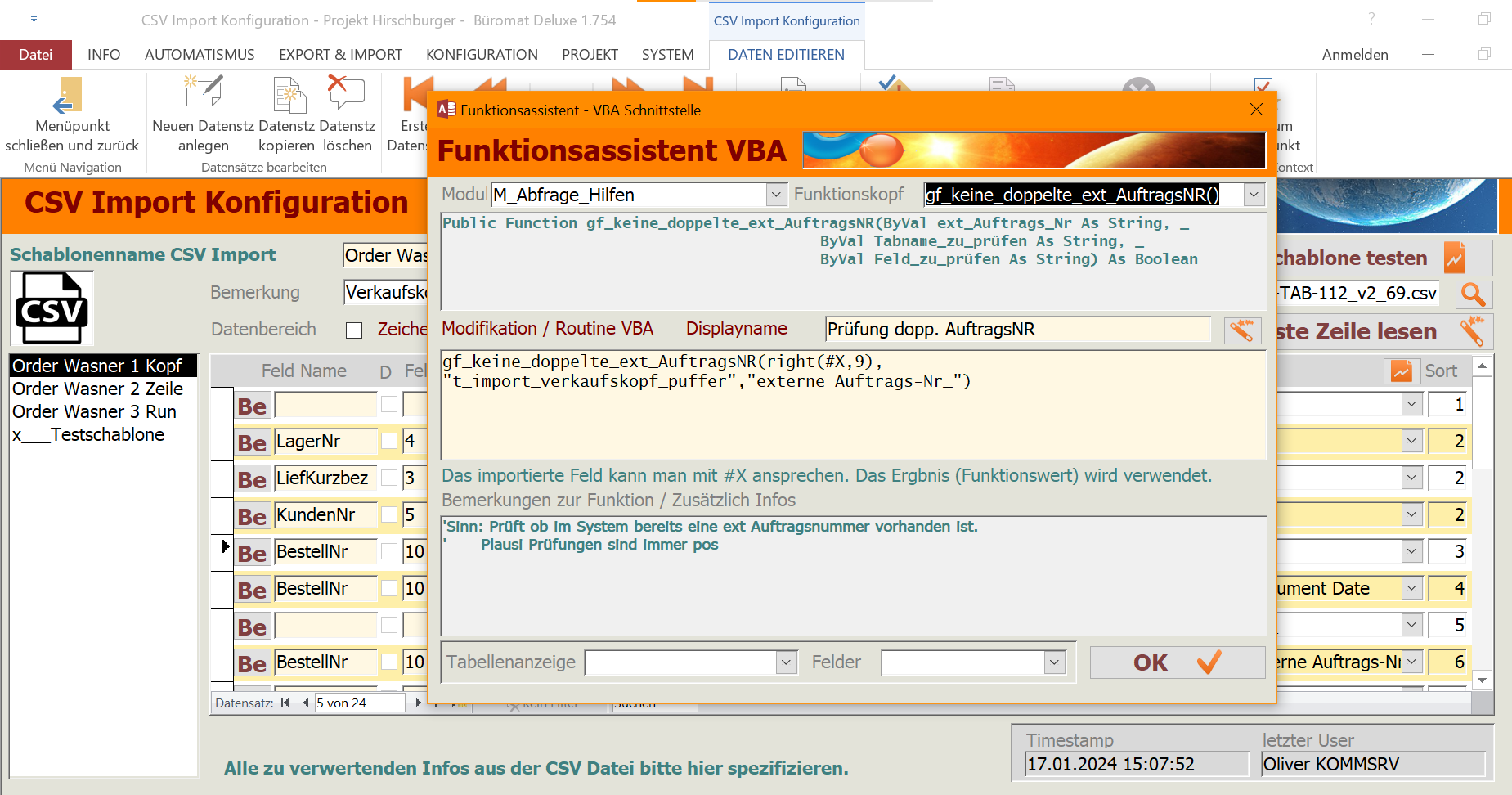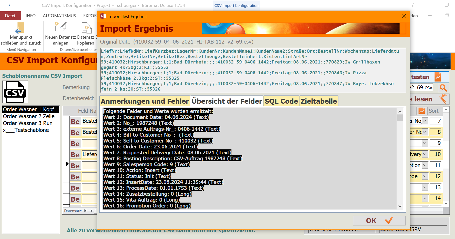 Dieses Modul ‚CSV Import‘ ermöglicht den Import von ACSII Text Dateien im CSV Format in die Datenbank des Büromat Deluxe.