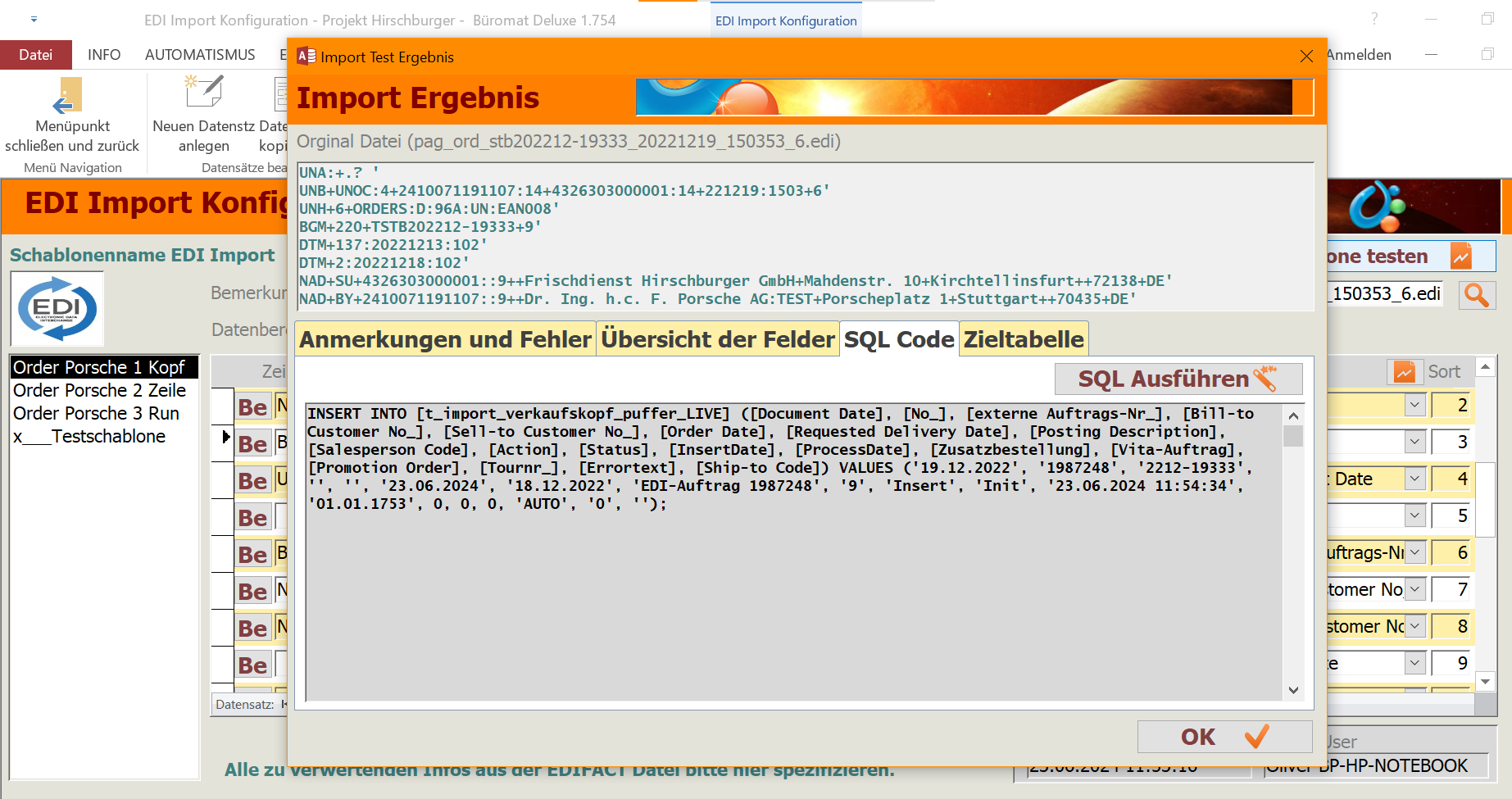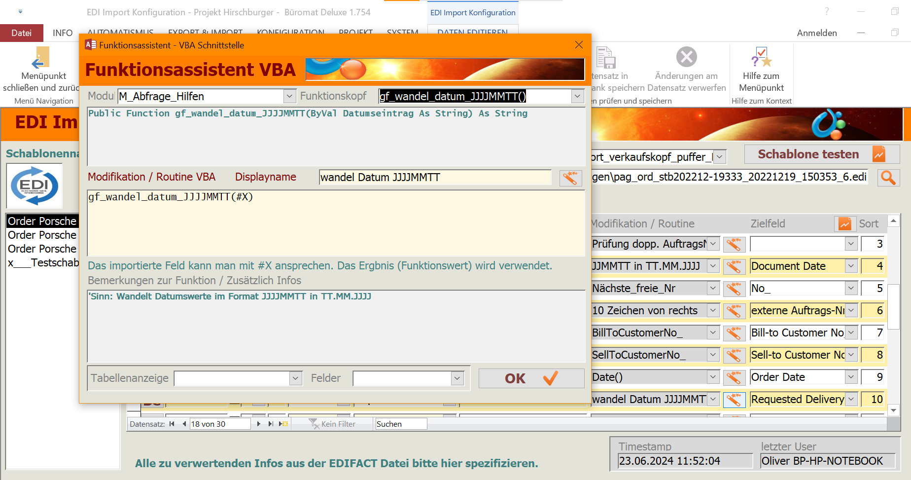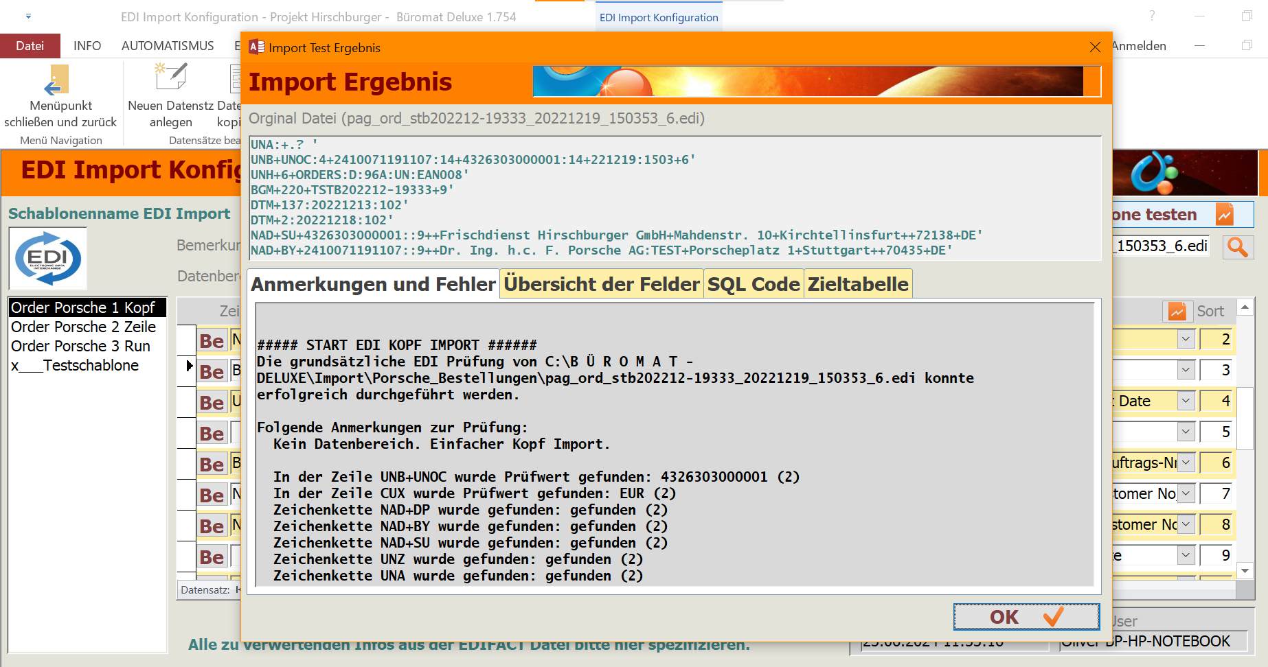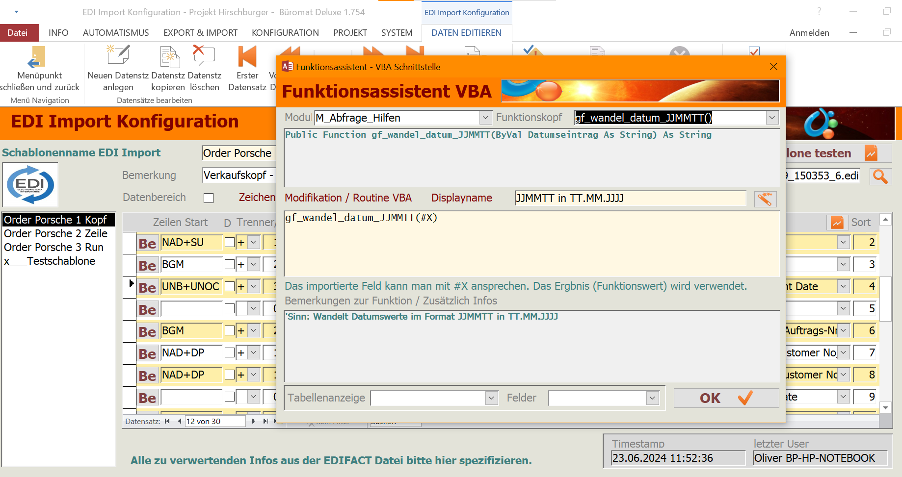 Bearbeiten der Schablonen für den Import von EDI Dateien